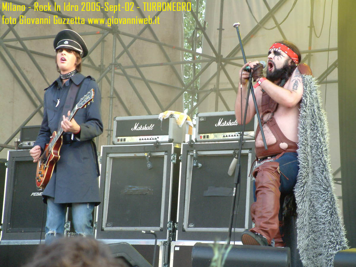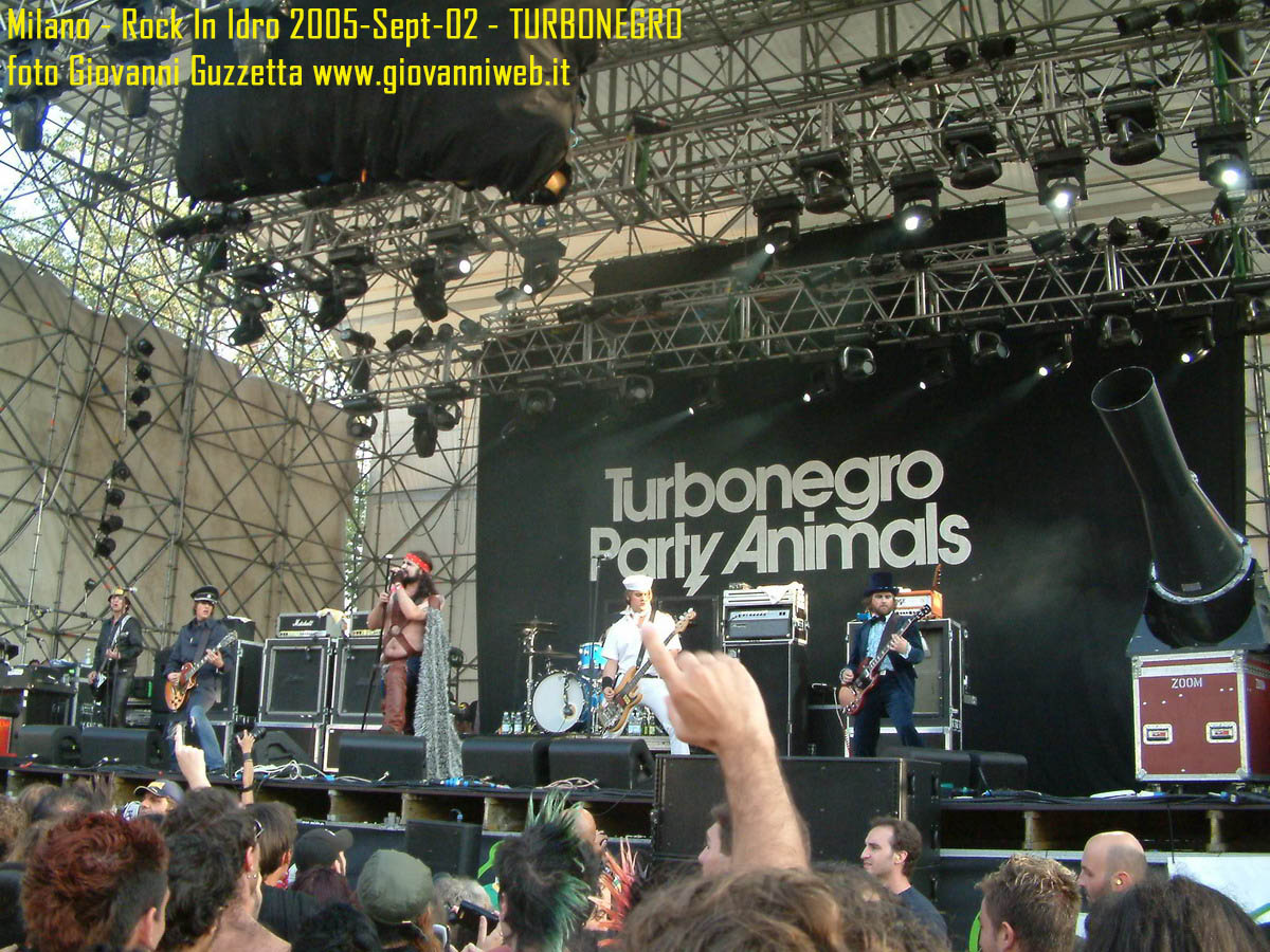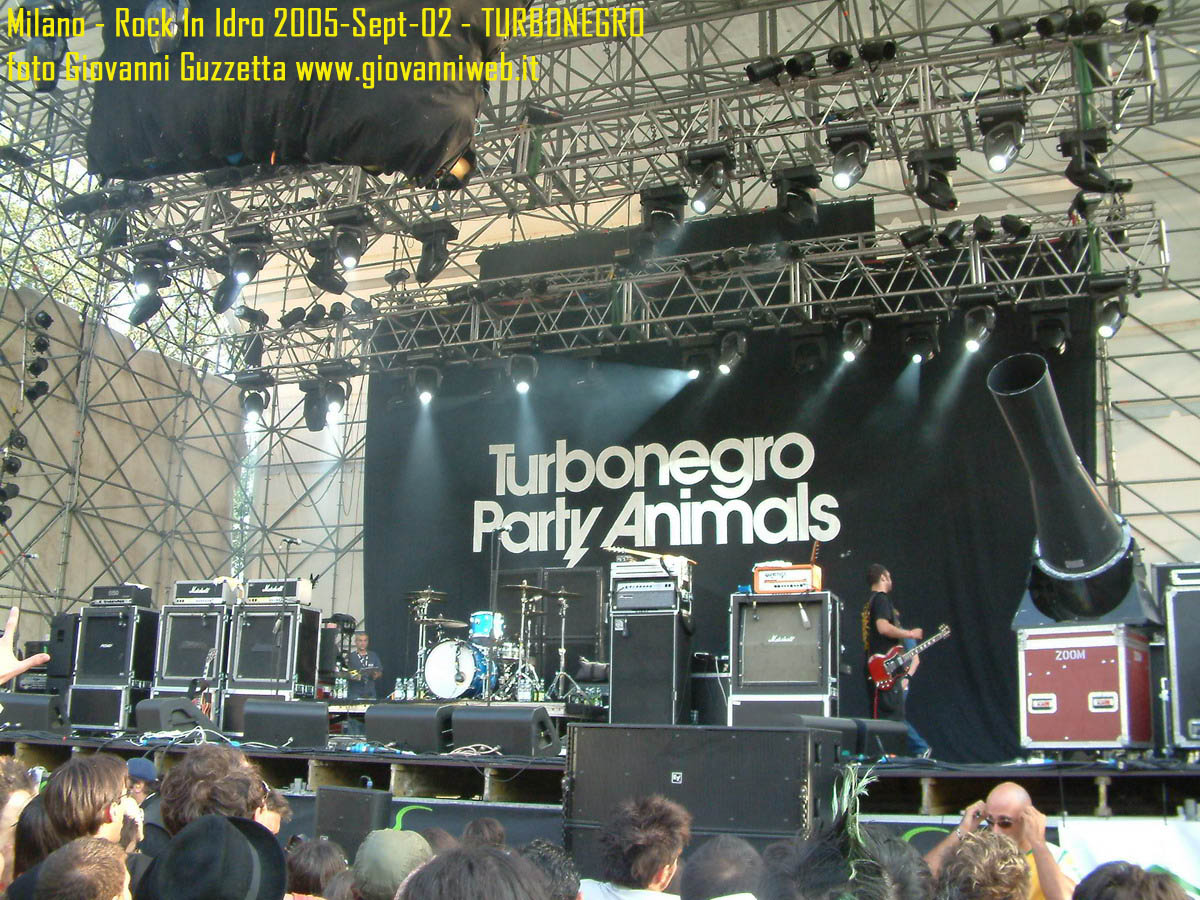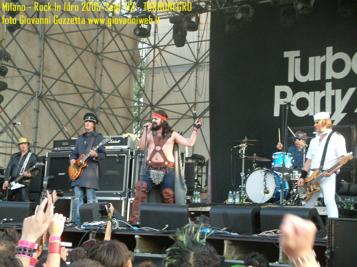 Poche parole di commento, sicuramente interessante la performance di Juliette & The Licks, notevoli gli Hives per presenza scenica e sound veramente stupendo dal vivo, bravi i Super Elastic Bubble Plastic, interessanti Voicst e Useless ID, divertenti i No Use for a Name, i PennyWise e gli Offspring anche se mi fanno riflettere sul tempo che passa, di fatti non c'era molta gente over 25, per di più con i miei pochi capelli non posso permettermi creste punk ma la tigna punk tra un pò. Cmq chemmefrega finchè posso mi godo sti spettacoli, un Festival l'anno di questo tipo mantiene giovani. Ah, capitolo a parte i Turbonegro, musicalmente non sono di certo miei favoriti, ma sono davvero bravi e hanno una organizzazione da palco mostruosa: palloncini che volano, banconote e strisce d'oro CANNONATE contro il pubblico (guardate le foto!) con le facce dei componenti che sculettano qui e là per il palco. Il cantante mi ricorda Abatantuono in ATTILA flaggello di Ddio. Mi sono perso la successiva giornata di Rock in Idro indi non aspettatevi foto di quella data. A seguire qualche foto di gente @ rock inidro così vi potete fare un pò l'idea. Dimenticavo, di contorno erano presenti BMX-ers e Skaters a dilettare con acrobazie i presenti. Mi faccio un pò schifo a dirlo, ma il palco dei non-big non l'ho nemmeno visto se non vuoto, ma ancora non ho il dono dell'ubiquità. A presto e fatemi sapere!!!!! Complimenti ad Af concerti per l'ottiom festival, non mancate alle future edizioni!