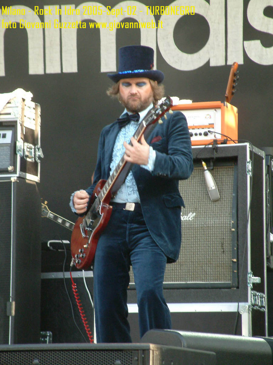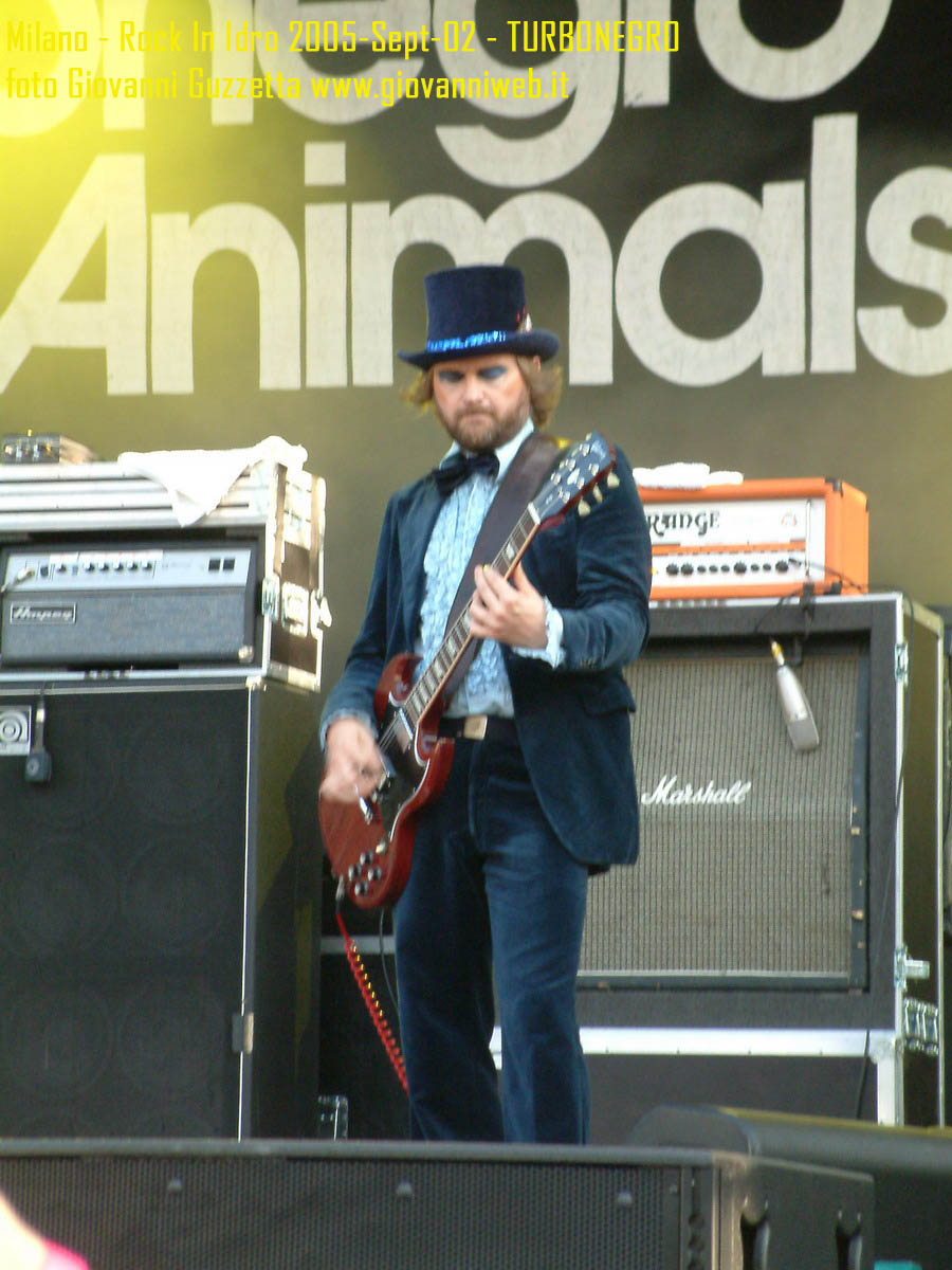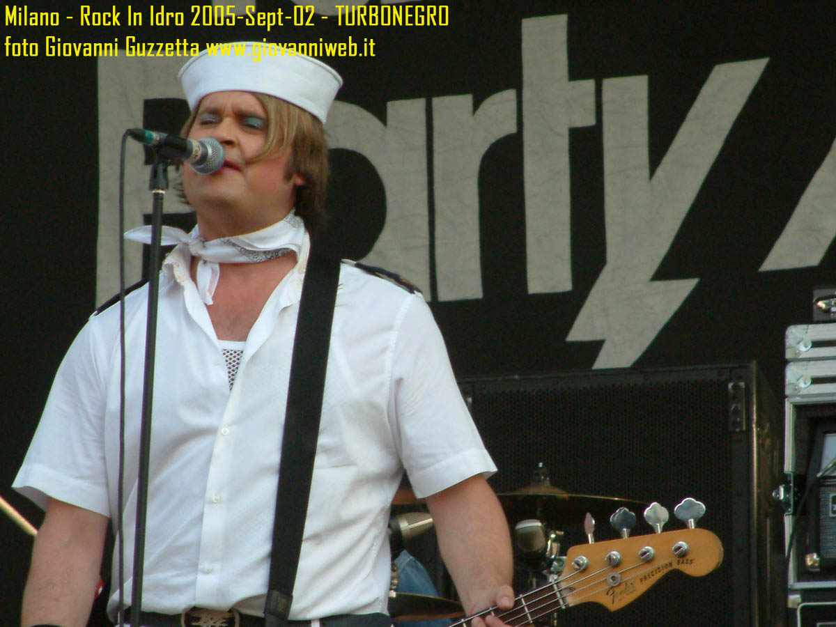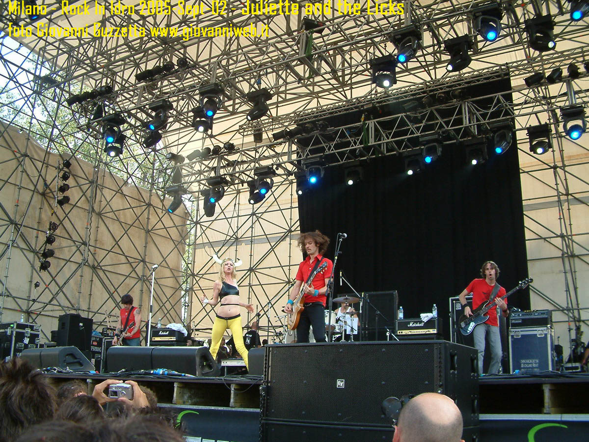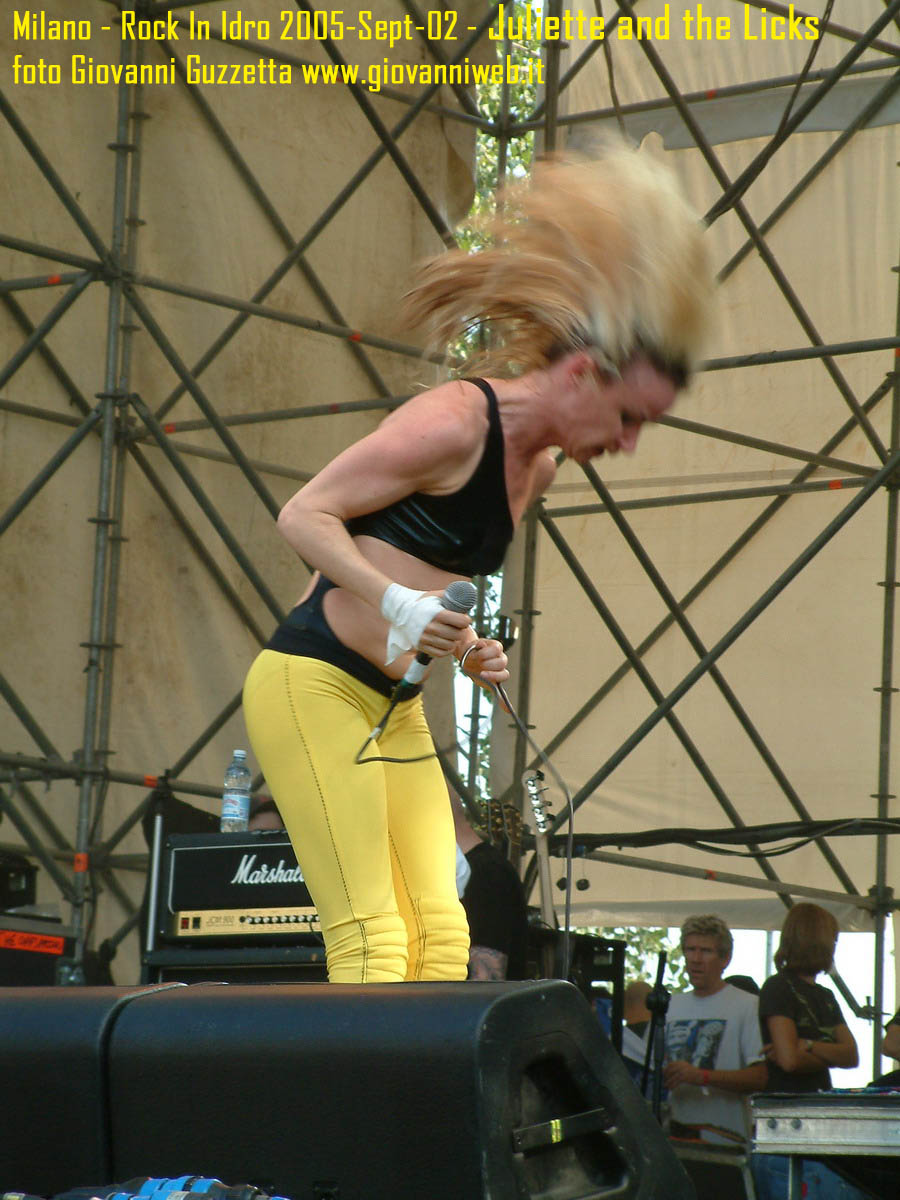 Poche parole di commento, sicuramente interessante la performance di Juliette & The Licks, notevoli gli Hives per presenza scenica e sound veramente stupendo dal vivo, bravi i Super Elastic Bubble Plastic, interessanti Voicst e Useless ID, divertenti i No Use for a Name, i PennyWise e gli Offspring anche se mi fanno riflettere sul tempo che passa, di fatti non c'era molta gente over 25, per di più con i miei pochi capelli non posso permettermi creste punk ma la tigna punk tra un pò. Cmq chemmefrega finchè posso mi godo sti spettacoli, un Festival l'anno di questo tipo mantiene giovani. Ah, capitolo a parte i Turbonegro, musicalmente non sono di certo miei favoriti, ma sono davvero bravi e hanno una organizzazione da palco mostruosa: palloncini che volano, banconote e strisce d'oro CANNONATE contro il pubblico (guardate le foto!) con le facce dei componenti che sculettano qui e là per il palco. Il cantante mi ricorda Abatantuono in ATTILA flaggello di Ddio. Mi sono perso la successiva giornata di Rock in Idro indi non aspettatevi foto di quella data. A seguire qualche foto di gente @ rock inidro così vi potete fare un pò l'idea. Dimenticavo, di contorno erano presenti BMX-ers e Skaters a dilettare con acrobazie i presenti. Mi faccio un pò schifo a dirlo, ma il palco dei non-big non l'ho nemmeno visto se non vuoto, ma ancora non ho il dono dell'ubiquità. A presto e fatemi sapere!!!!! Complimenti ad Af concerti per l'ottiom festival, non mancate alle future edizioni!
