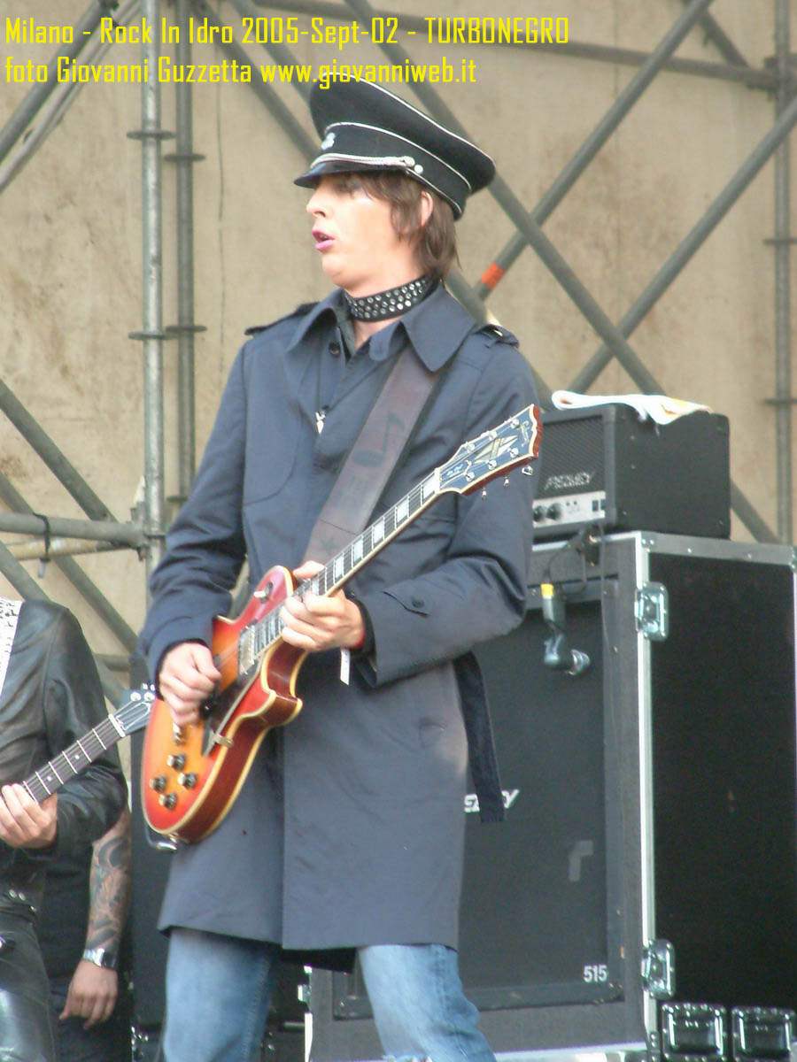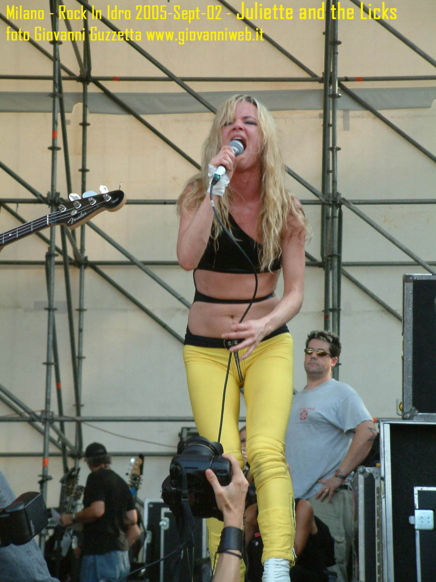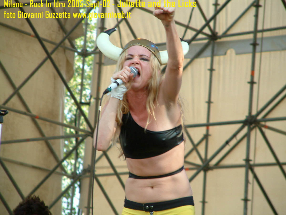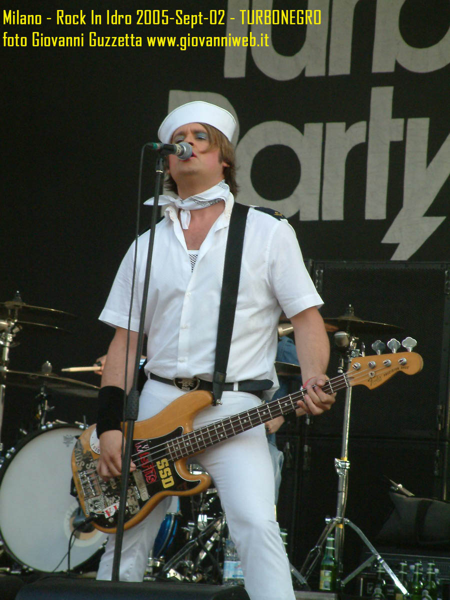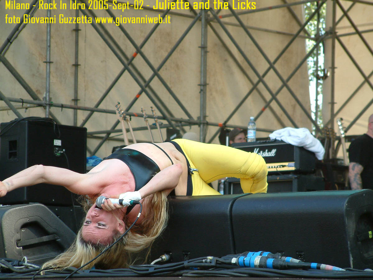 Poche parole di commento, sicuramente interessante la performance di Juliette & The Licks, notevoli gli Hives per presenza scenica e sound veramente stupendo dal vivo, bravi i Super Elastic Bubble Plastic, interessanti Voicst e Useless ID, divertenti i No Use for a Name, i PennyWise e gli Offspring anche se mi fanno riflettere sul tempo che passa, di fatti non c'era molta gente over 25, per di più con i miei pochi capelli non posso permettermi creste punk ma la tigna punk tra un pò. Cmq chemmefrega finchè posso mi godo sti spettacoli, un Festival l'anno di questo tipo mantiene giovani. Ah, capitolo a parte i Turbonegro, musicalmente non sono di certo miei favoriti, ma sono davvero bravi e hanno una organizzazione da palco mostruosa: palloncini che volano, banconote e strisce d'oro CANNONATE contro il pubblico (guardate le foto!) con le facce dei componenti che sculettano qui e là per il palco. Il cantante mi ricorda Abatantuono in ATTILA flaggello di Ddio. Mi sono perso la successiva giornata di Rock in Idro indi non aspettatevi foto di quella data. A seguire qualche foto di gente @ rock inidro così vi potete fare un pò l'idea. Dimenticavo, di contorno erano presenti BMX-ers e Skaters a dilettare con acrobazie i presenti. Mi faccio un pò schifo a dirlo, ma il palco dei non-big non l'ho nemmeno visto se non vuoto, ma ancora non ho il dono dell'ubiquità. A presto e fatemi sapere!!!!! Complimenti ad Af concerti per l'ottiom festival, non mancate alle future edizioni!