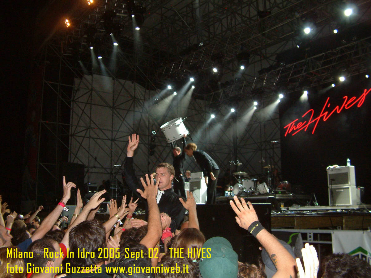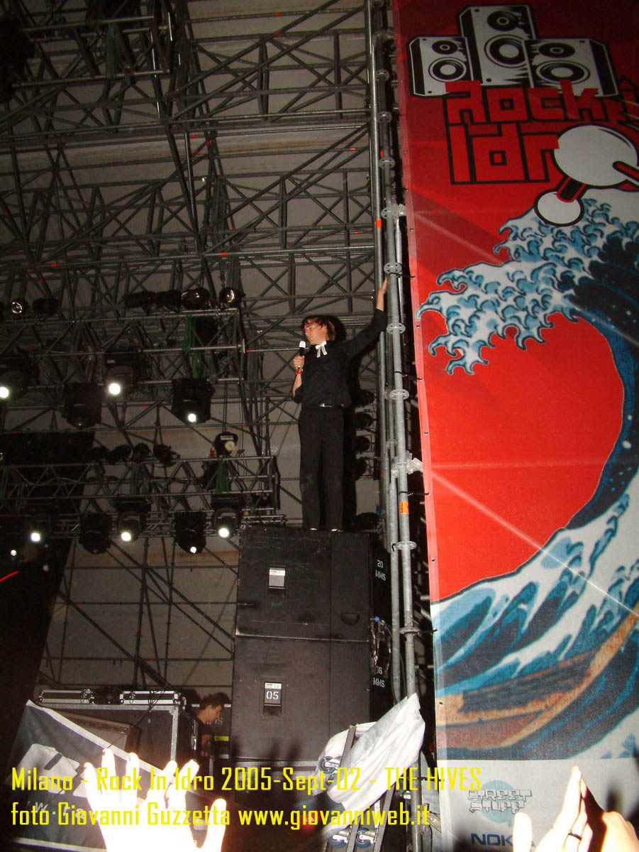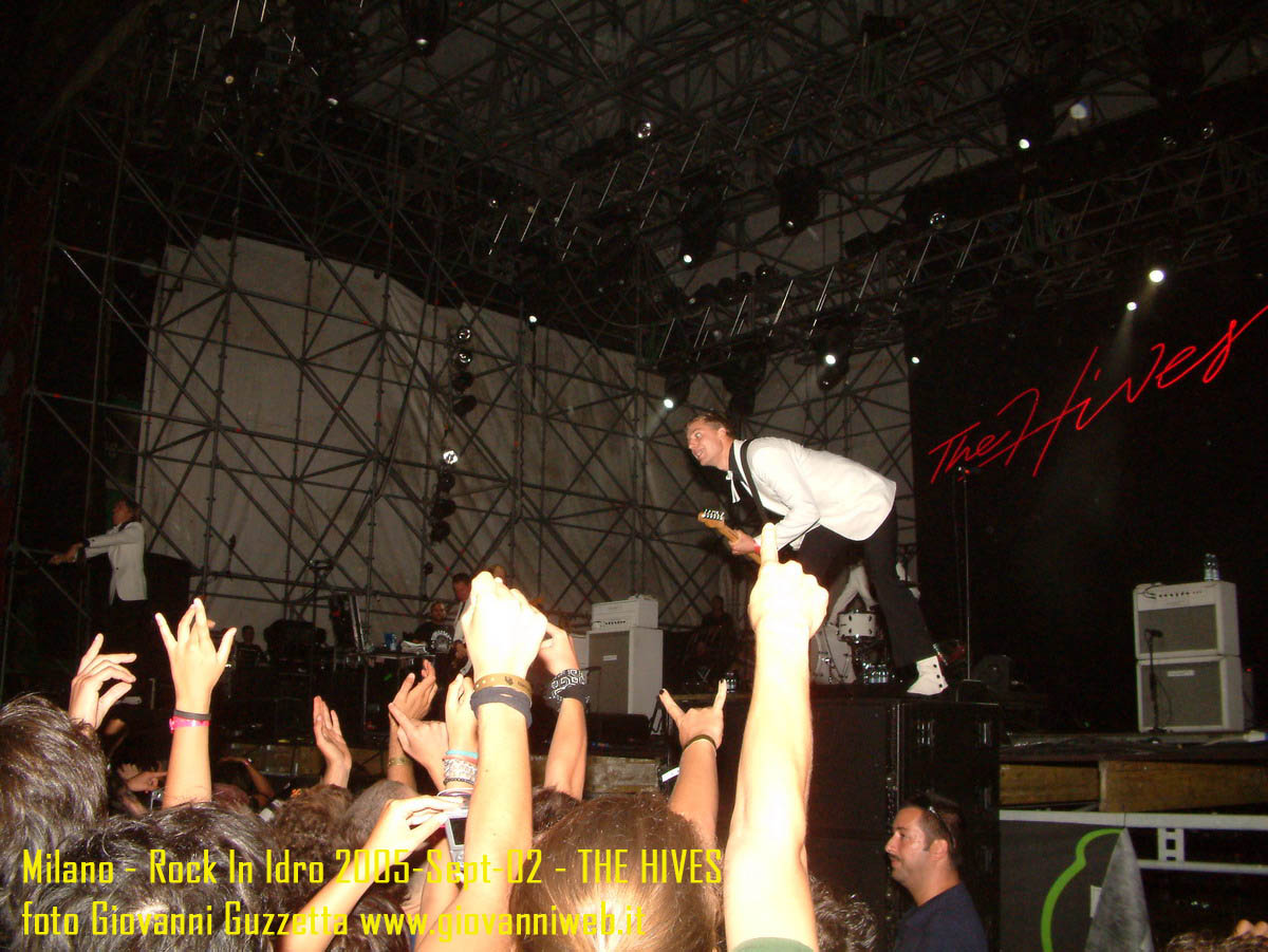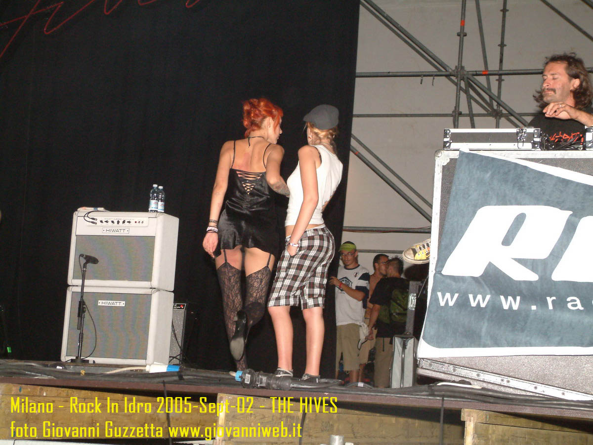 PS in risposta a chi mi ha chiesto: no!!!! Le due tizie non sono componenti degli Hives ;) ma hanno organizzato un balletto sexy d'inizio concerto per fare sbavare un pò la gente stanca dopo ore di pogo. Un saluto a mio compare budino per essere riuscito a raggiungermi a 3/4 di festival e un cordiale saluto ai suoi superiori per aver convocato la riunione all'ultimo momento che gli ha fatto perdere mezzo concerto. Come al solito, dedicaci un minuto e lasciaci un commento per le foto o le tolgooooo ;)!